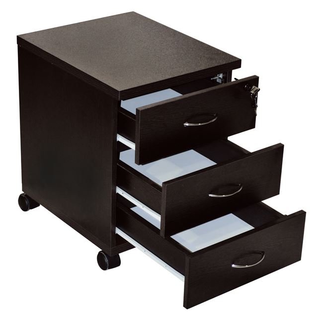 Τροχήλατη συρταριέρα γραφείου για επαγγελματική χρήση σε χρώμα βέγγε, με κλειδαριά, μοντέρνα, σχεδιασμένη για να αποθηκεύεις έντυπα και τα καθημερινά μικροαντικείμενα του γραφείου σου. Κατασκευασμένη από ανθεκτική μελαμίνη.
