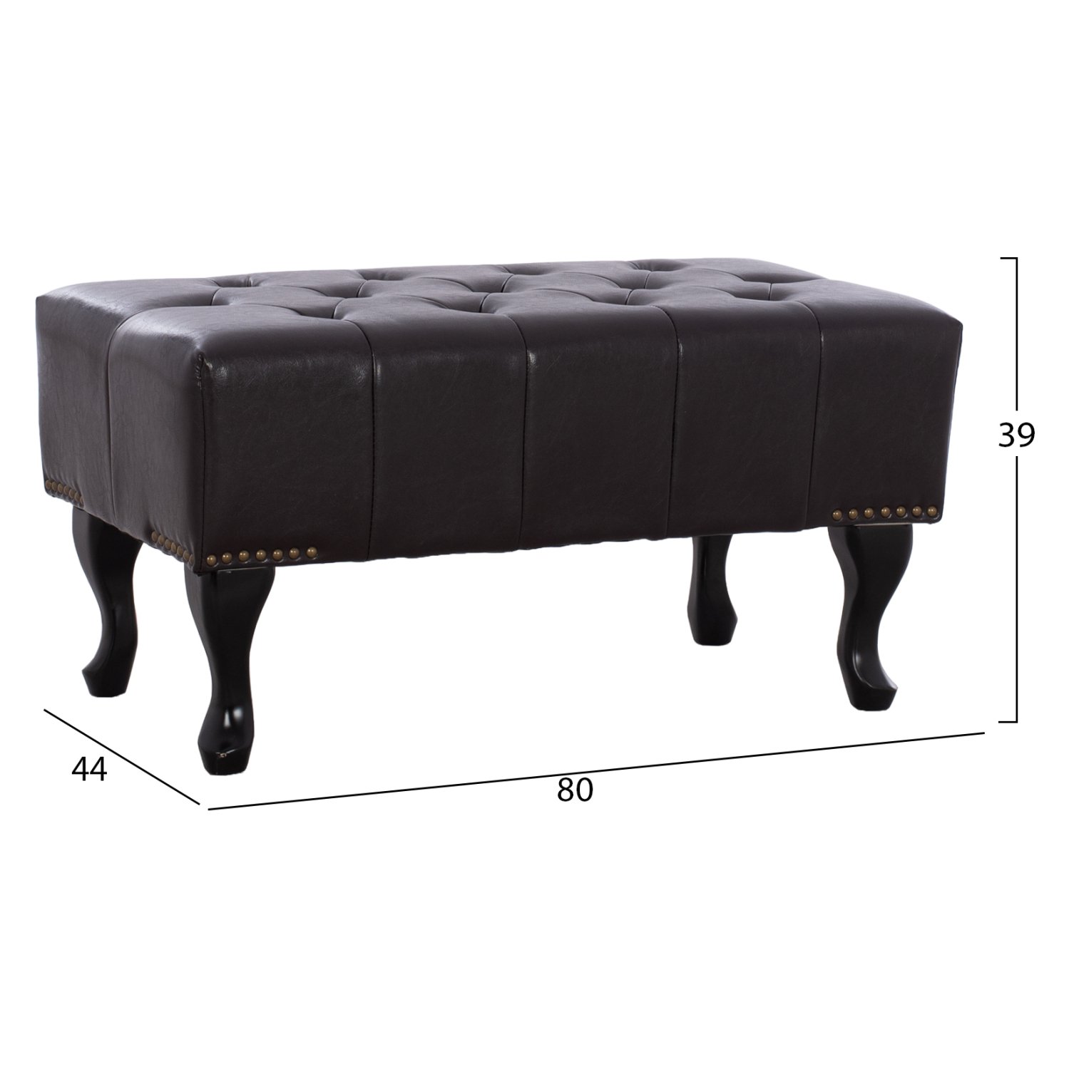 Ταμπουρέ-υποπόδιο τύπου Chesterfield EMMA από PU δέρμα, σε σκούρα καφέ απόχρωση.