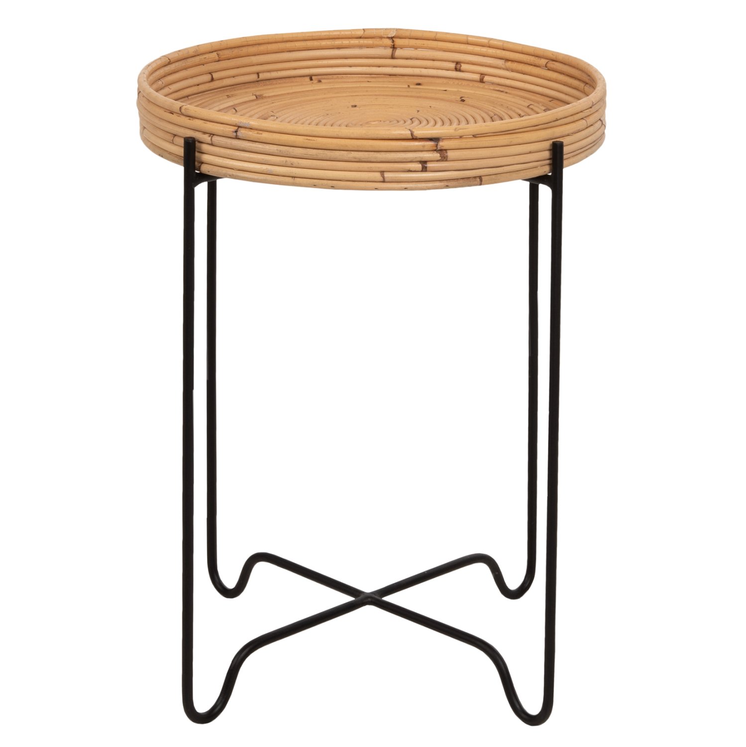 ΤΡΑΠΕΖΑΚΙ ΒΟΗΘΗΤΙΚΟ FLY HM7906 RATTAN ΦΥΣΙΚΟ ΧΡΩΜΑ-ΜΕΤΑΛΛΙΚΗ ΒΑΣΗ ΜΑΥΡΗ Φ40x53Yεκ.