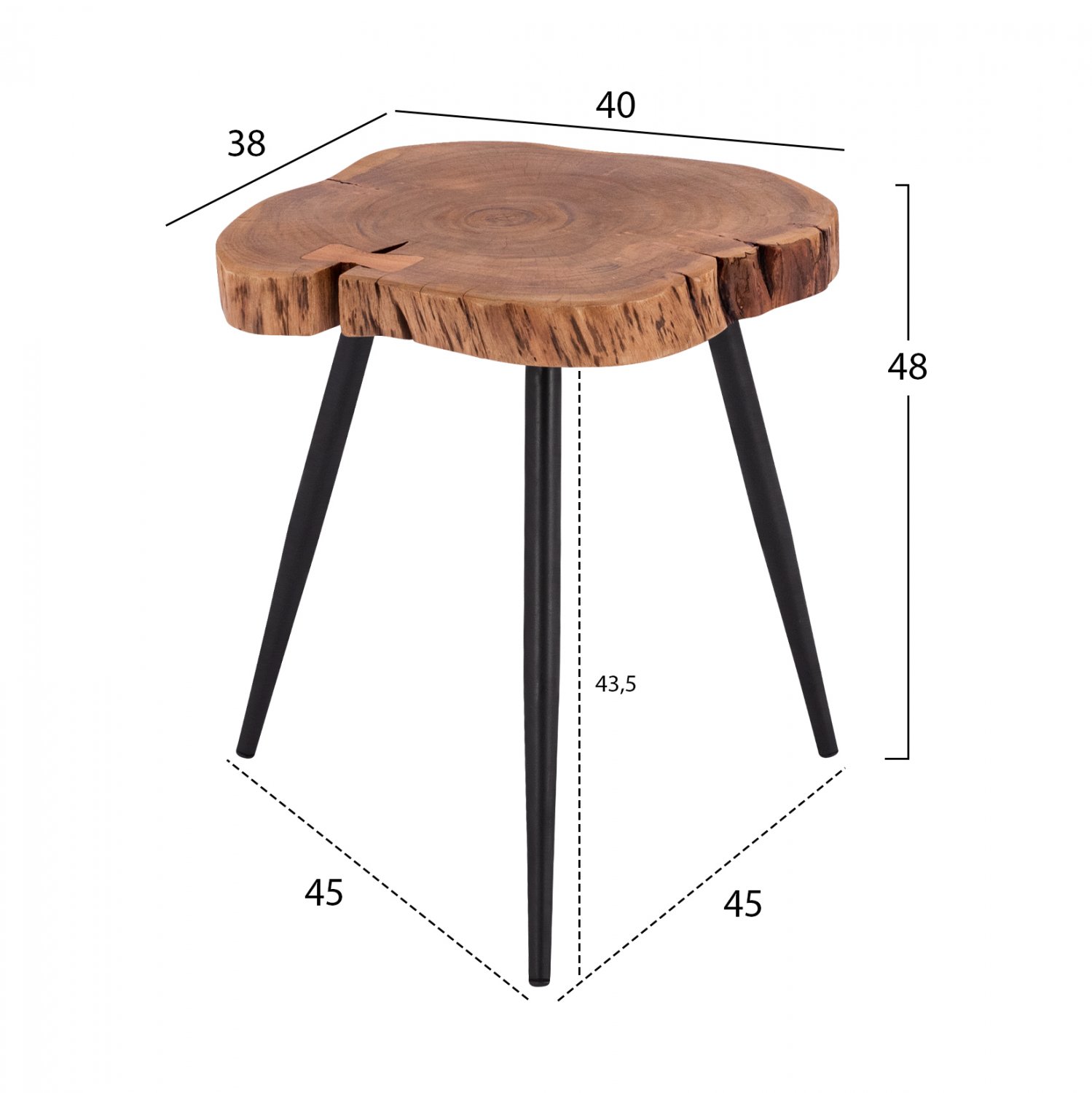 ΗΜ8202.11 Βοηθητικό τραπεζάκι—– Το τρίποδο βοηθητικό τραπεζάκι ΗΜ8202.11 είναι ο ορισμός του ρουστίκ στυλ στο έπιπλο. Το ξύλο είναι στο φυσικό του χρώμα αλλά και στην φυσική του κατάσταση, δηλαδή μια φέτα από τον κορμό του δέντρου. Τα 3 μαύρα μεταλλικά πόδια ολοκληρώνουν αυτή την πολύ απλή και πρακτική υλοποίηση.