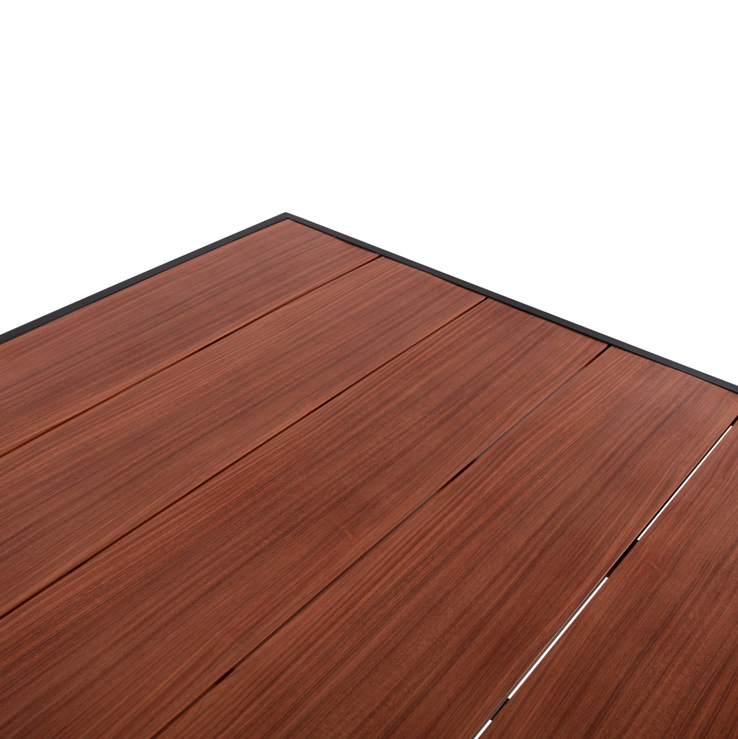Το GOBAR είναι ένα μεγάλο ορθογώνιο τραπέζι για εξωτερικούς χώρους με σκελετό αλουμινίου σε ΑΝΘΡΑΚΙ χρώμα. Η επιφάνεια είναι επίσης από slats (φέτες) αλουμινίου σε χρώμα απομίμησης ξύλου. Πρόκειται για ένα τραπέζι που μπορεί να εξυπηρετήσει 8 τουλάχιστον άτομα, φιλοξενώντας τις πιο όμορφες στιγμές της ζωής σας.