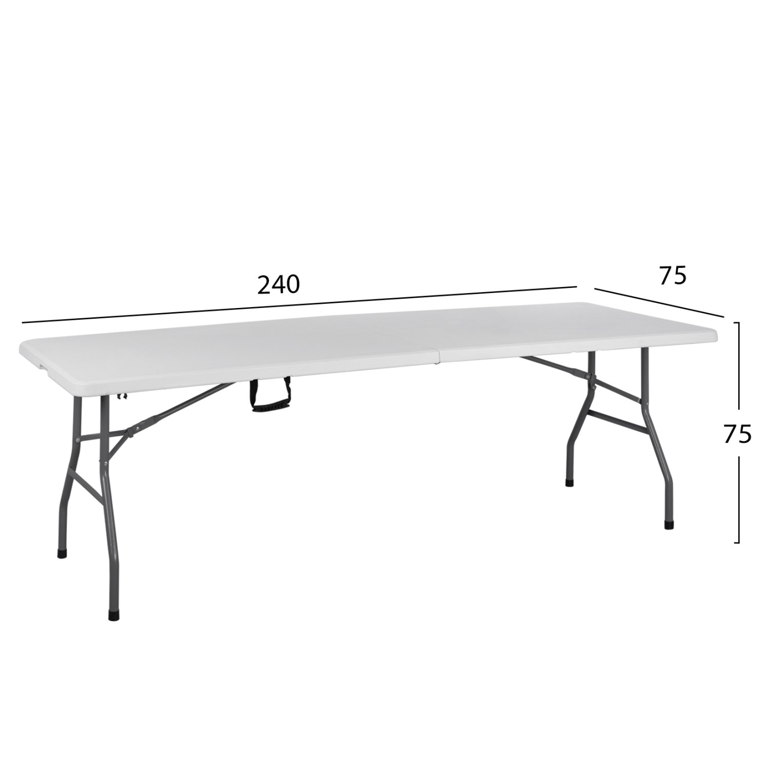 Το HM5681 είναι ένα μακρύ ορθογώνιο τραπέζι με ΛΕΥΚΗ επιφάνεια και ΓΚΡΙ πόδια, ειδικά κατασκευασμένο για εταιρίες catering, για συνεδριακούς χώρους και γενικά για όποιον θέλει ένα ή περισσότερα τραπέζια για πολυπληθείς συγκεντρώσεις χωρίς το άγχος της αποθήκευσης αφού αυτό το τραπέζι είναι πτυσσόμενο και εύκολα μεταφέρεται με την ειδική χειρολαβή που διαθέτει, αφού ο σχεδιασμός του είναι αυτός της «βαλίτσας».