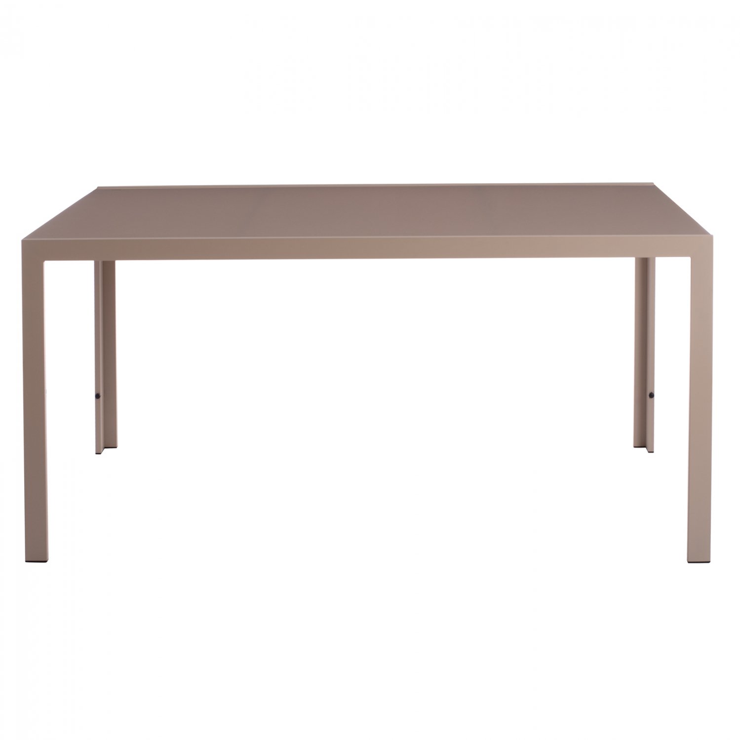 Τραπέζι εξωτερικού χώρου μεταλλικό σε απόχρωση καπουτσίνο με γυαλί στην επιφάνειά του.