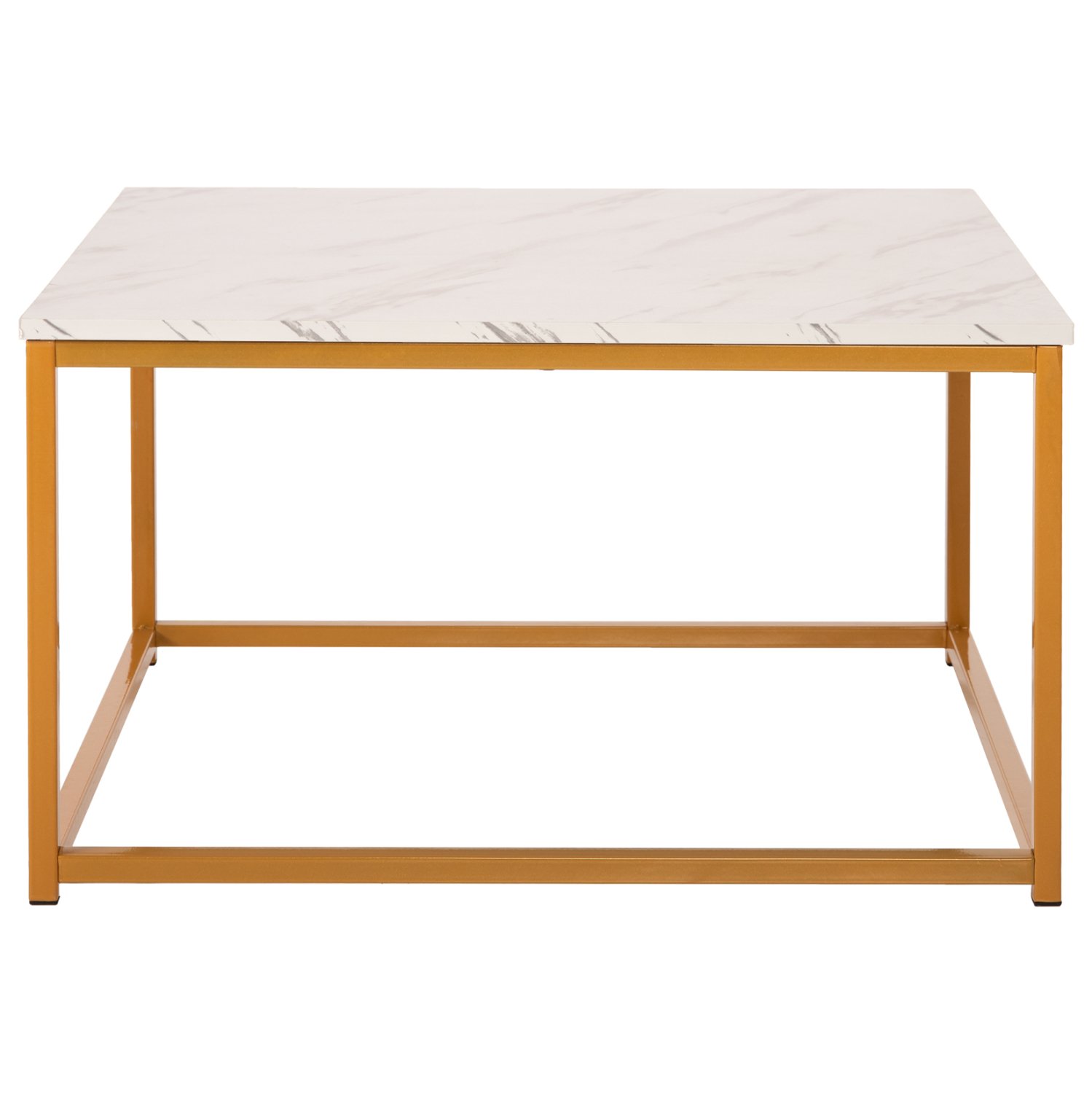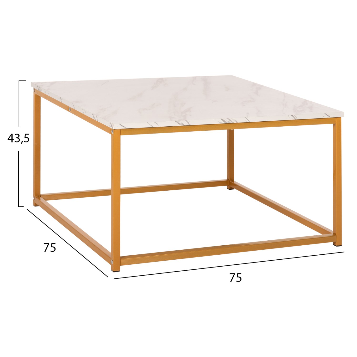 ΤΡΑΠΕΖΙ ΣΑΛΟΝΙΟΥ BRAYLEN HM8942.11 ΜΕΛΑΜΙΝΗ ΛΕΥΚΟ ΜΑΡΜΑΡΟ-ΧΡΥΣΗ ΒΑΣΗ 75x75x43,5Υεκ.