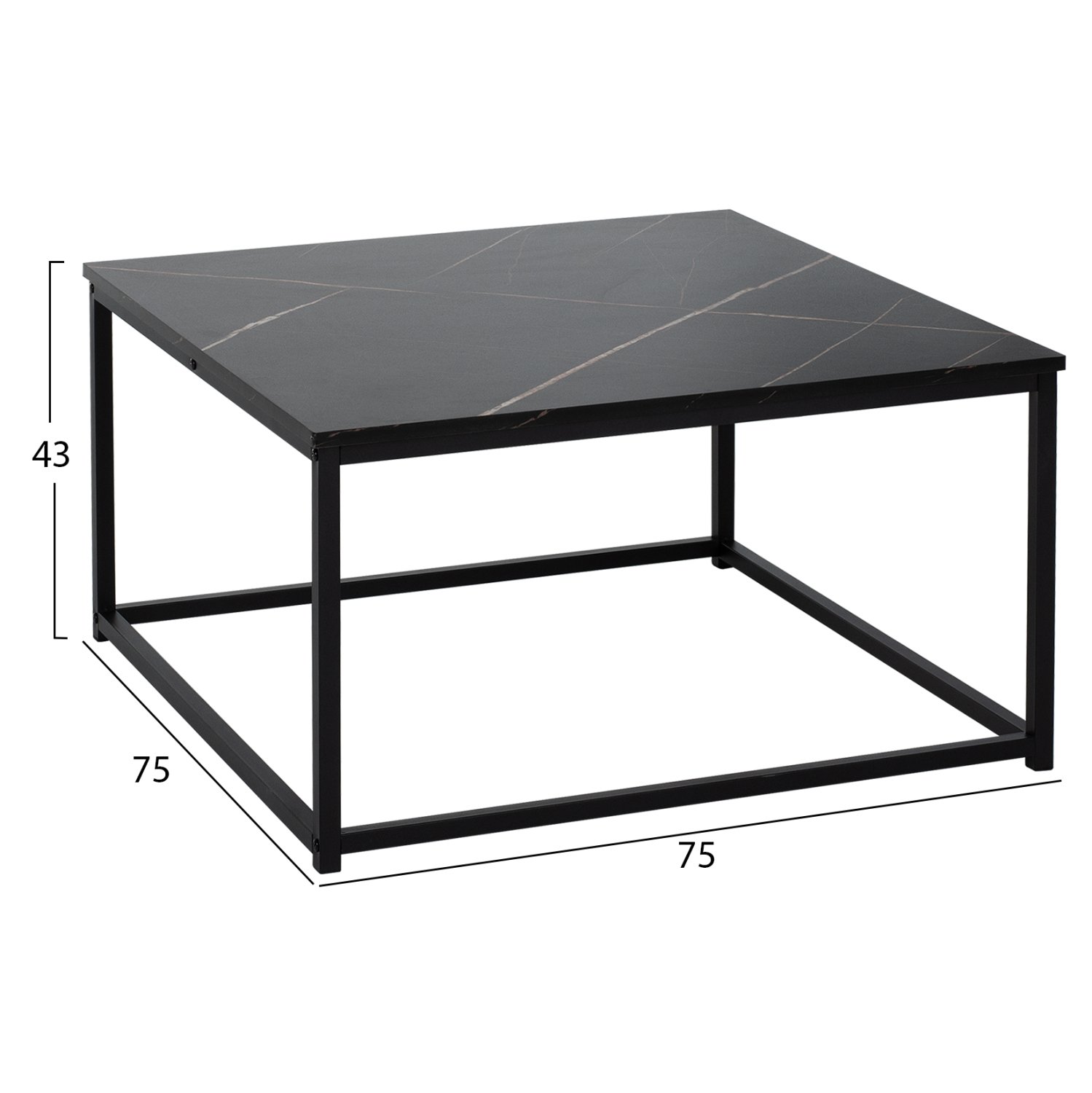 ΤΡΑΠΕΖΙ ΣΑΛΟΝΙΟΥ BRAYLEN HM8942.13 ΤΕΤΡΑΓΩΝΟ ΜΕ ΜΕΛΑΜΙΝΗ ΜΑΥΡΟ ΜΑΡΜΑΡΟ 75x75x43Υεκ.