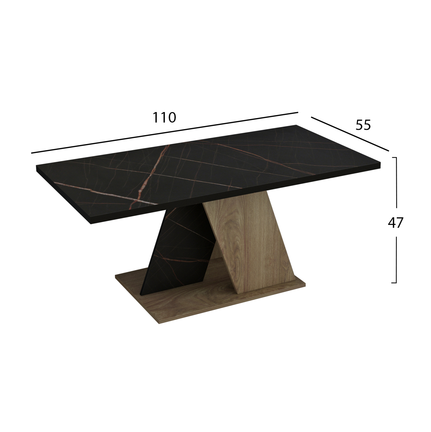 ΤΡΑΠΕΖΙ ΣΑΛΟΝΙΟΥ DILE HM9528.03 ΜΕΛΑΜΙΝΗ ΣΕ ΦΥΣΙΚΟ-ΜΑΥΡΟ ΜΑΡΜΑΡΟ 110x55x47Υεκ.