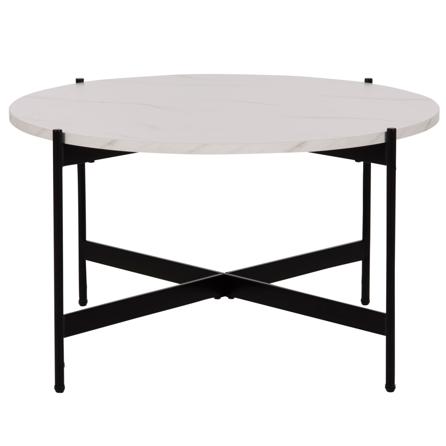 Το τραπεζάκι ΗΜ9588.05 θα σας ενθουσιάσει με το στυλ και την πρακτικότητά του. Πρόκειται για ένα στρογγυλό τραπεζάκι με ιδιαίτερο χαρακτηριστικό ότι η επιφάνεια στηρίζεται σε μια βάση με χιαστί διάταξη. Η βάση είναι μεταλλική σε ΜΑΥΡΟ χρώμα, ενώ η επιφάνεια είναι κατασκευασμένη από MDF σε χρώμα ΛΕΥΚΟΥ ΜΑΡΜΑΡΟΥ.