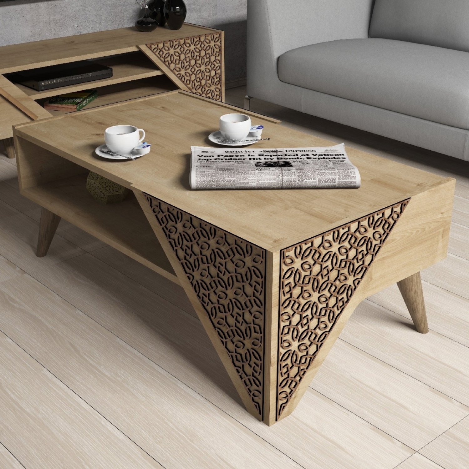 ΗΜ9498.01 τραπεζάκι σαλονιού—– Το τραπεζάκι αυτό είναι ένα όμορφο έπιπλο σε χρώμα ΟΑΚ. Το πανέμορφο design θα αλλάξει την εικόνα του σαλονιού ή του καθιστικού σας προς το καλύτερο. Πρόκειται για μια κατασκευή με μια ικανοποιητικού μεγέθους επάνω επιφάνεια. Από κάτω υπάρχει ανοιχτός αποθηκευτικός χώρος σαν δεύτερη επιφάνεια. Το χαρακτηριστικό, όμως, σε αυτό το τραπεζάκι είναι ότι σε δύο γωνίες δεν υπάρχουν τα κλασσικά πόδια αλλά όμορφες σκαλιστές (CNC Relief) κατασκευές. Η κομψότητα, η ποιότητα και το minimal μοντέρνο design χαρακτηρίζουν αυτό το τραπεζάκι, που έχει φτιαχτεί για εσένα.