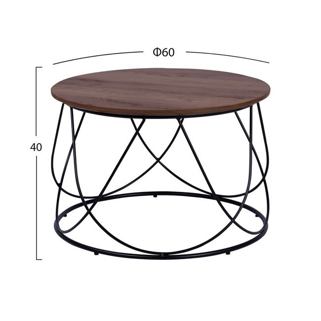 Τραπεζάκι σαλονιού σε καρυδί απόχρωση, με διάμετρο επιφάνειας Φ60.