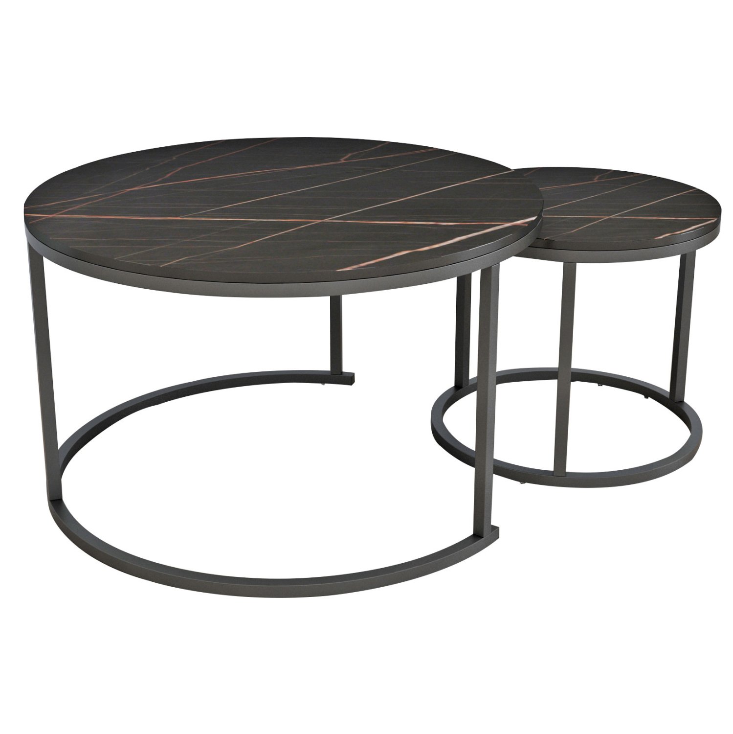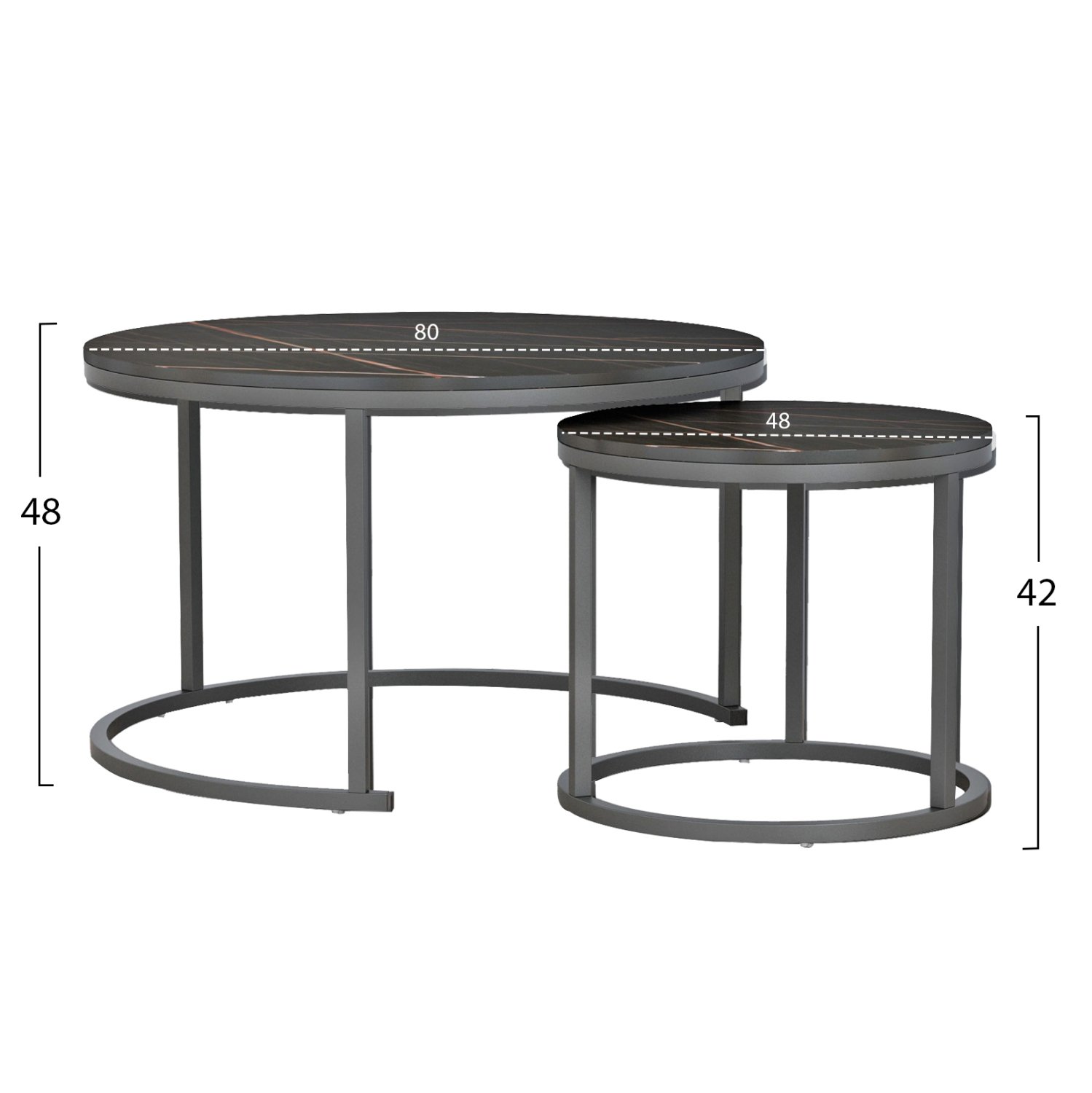 ΤΡΑΠΕΖΙ ΣΑΛΟΝΙΟΥ ΣΕΤ 2ΤΜΧ MDF ΕΦΕ ΜΑΥΡΟ ΜΑΡΜΑΡΟ ΜΕ ΜΑΥΡΑ ΠΟΔΙΑ Φ80κΦ48εκ.HM8763.13