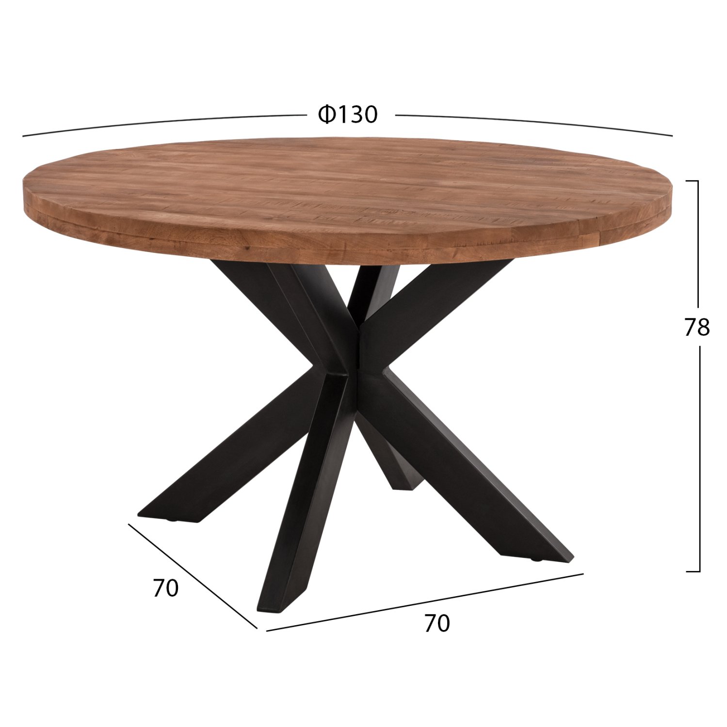 ΤΡΑΠΕΖΙ ΣΤΡΟΓΓΥΛΟ WES ΑΠΟ ΜΑΣΙΦ ΞΥΛΟ MANGO ΠΑΧΟΥΣ 6εκ. HM8484.11 Φ130Χ78Υ εκ.