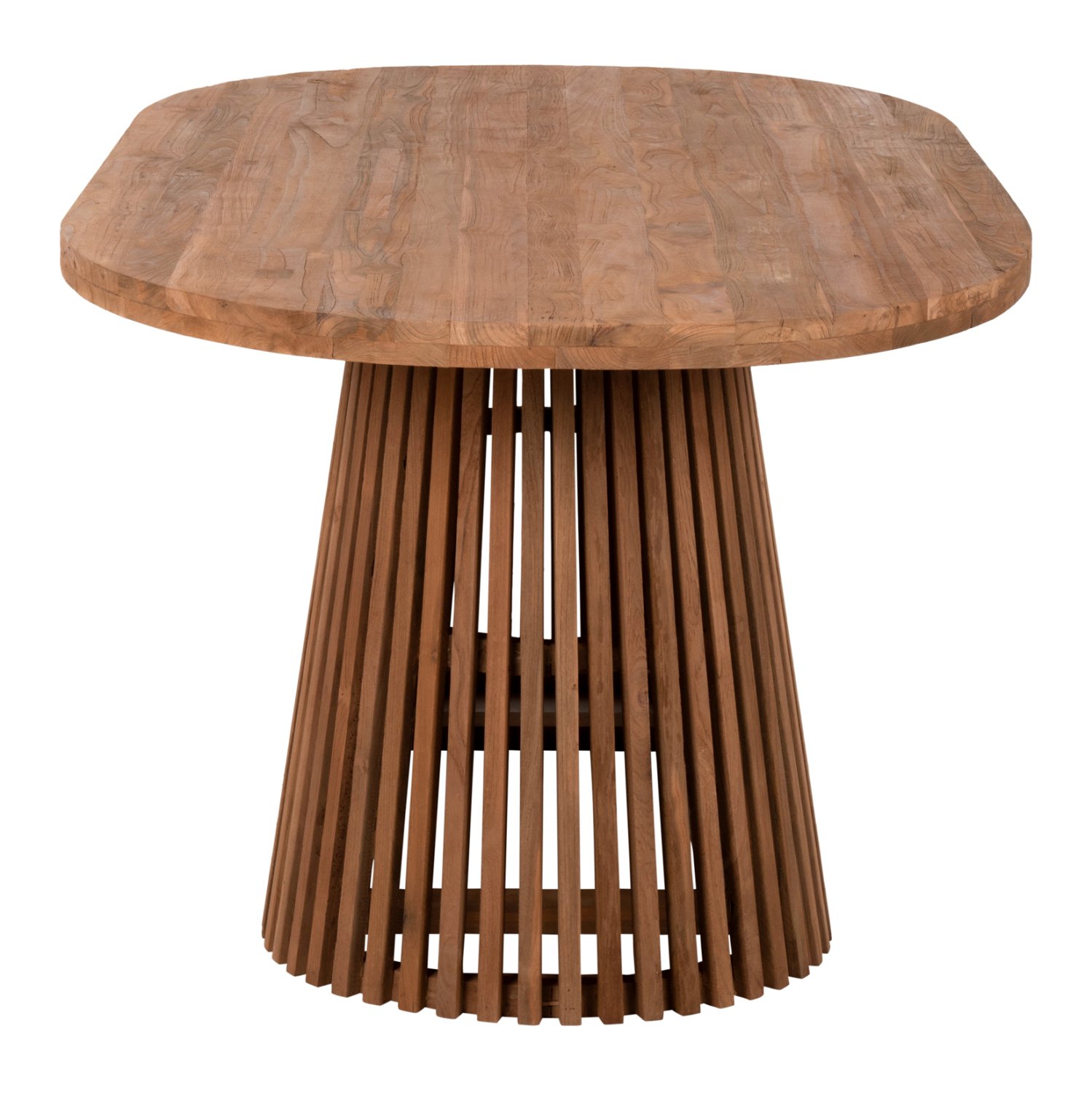 Το REMIK είναι ένα μεγάλο οβάλ τραπέζι για την τραπεζαρία σε φυσικό χρώμα ξύλου. Η επιφάνεια πάχους 4 εκατοστών, στηρίζεται σε μια επίσης οβάλ ξύλινη κατασκευή με πολλές δοκούς που ενώνονται μεταξύ τους με δακτυλίους στην εσωτερική πλευρά. Αυτό το τραπέζι θα αναβαθμίσει αισθητικά την τραπεζαρία σας ενώ μπορεί να ταιριάξει με πολλά διαφορετικά στυλ και χρώματα στον τριγύρω χώρο, όπως και με διαφορετικά στυλ καρέκλας.