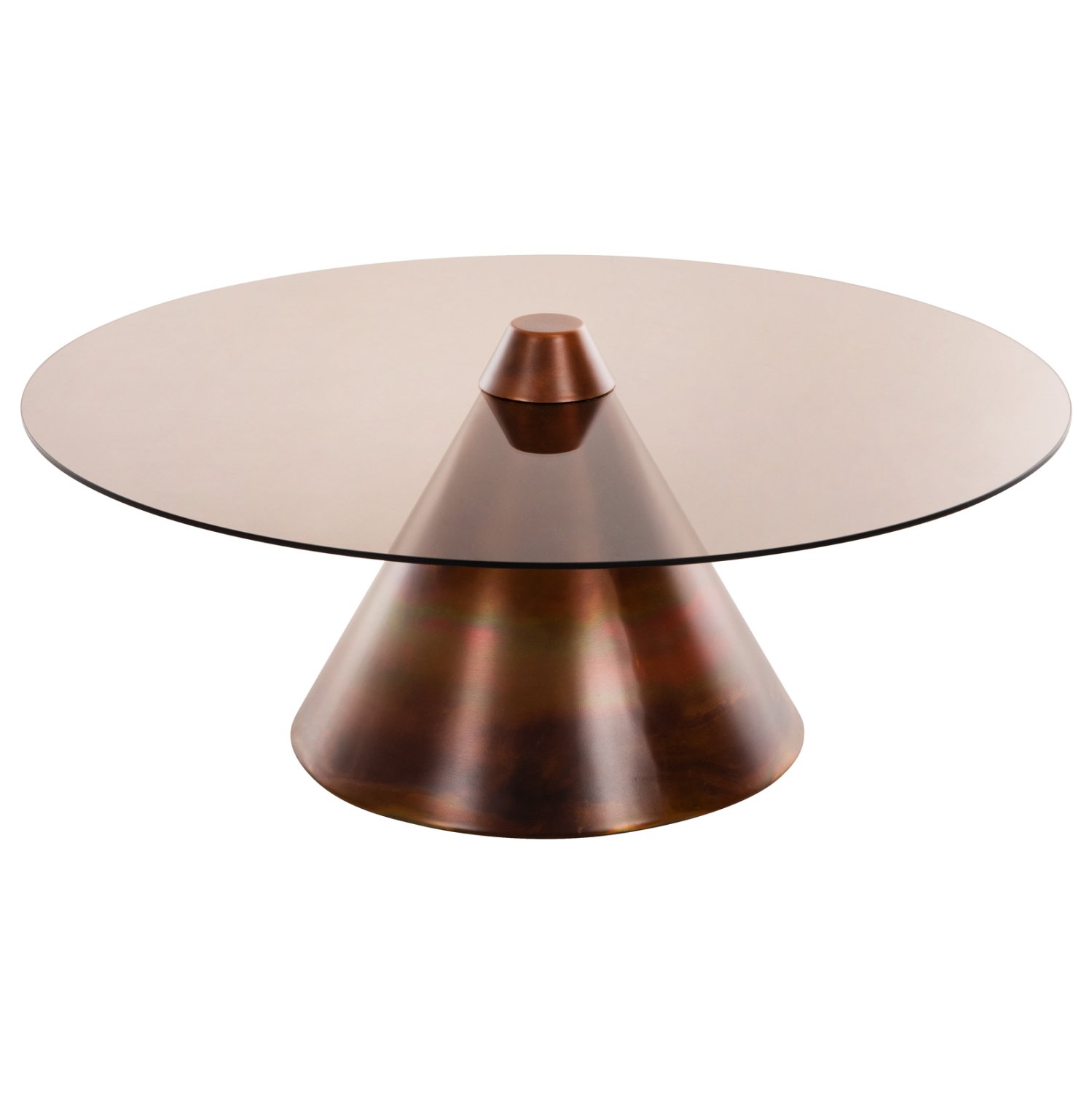 ΤΡΑΠΕΖΙA ΣΑΛΟΝΙΟΥ 2ΤΜΧ REBEN HM9676 ΜΕΤΑΛΛΟ ΚΑΦΕ ΜΠΡΟΝΖΕ-ΦΙΜΕ ΓΥΑΛΙ Φ80 & Φ60 εκ.