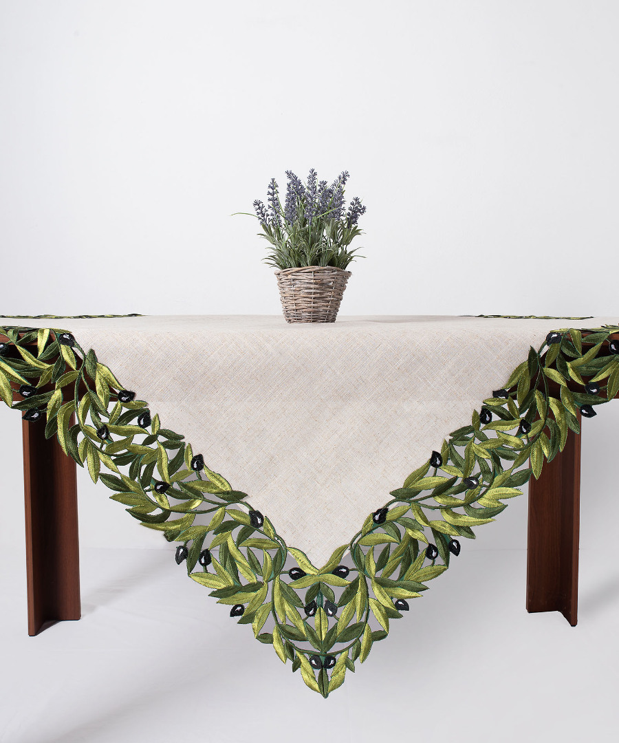 Τραπεζοκαρέ με ύφασμα και κοφτό σχέδιο με ελιά στη φάσα.