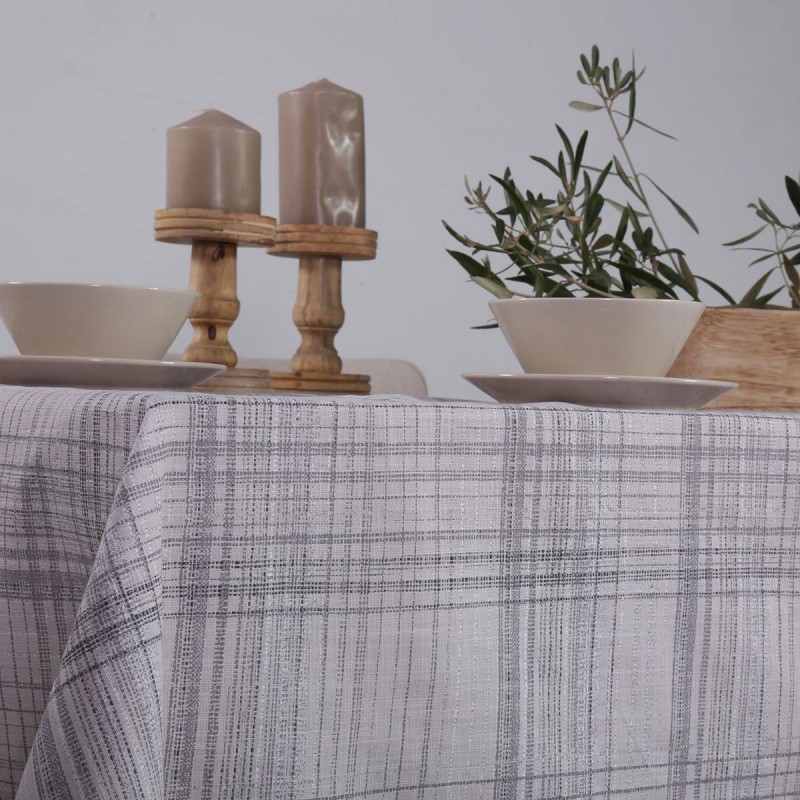 Τραπεζομάντηλο με καρό τυπωτό σχέδιο και γκρι χρώμα. Ύφασμα από 100% βαμβάκι βάρους 150gsm που το κάνει ανθεκτικό. Ένα κλασσικό τραπεζομάντηλο που θα στολίσει το τραπέζι της κουζίνας σας σε κάθε περίσταση!