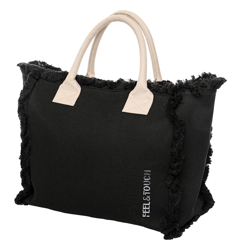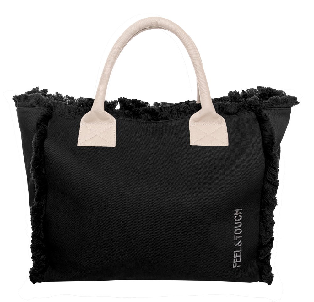 Τσάντα Ώμου 40x35x20 Shoulder Beach Bag Feel And Touch Caribbean Black-Ammos