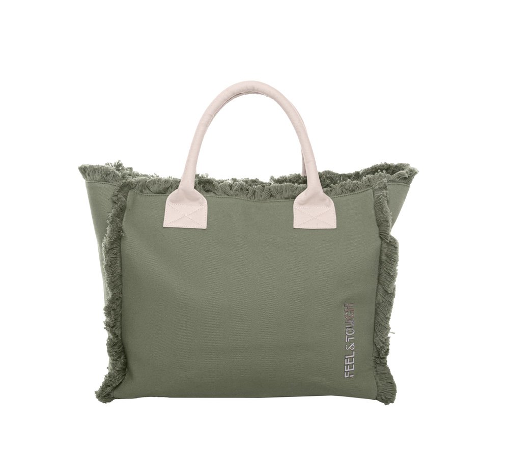 Τσάντα Ώμου 40x35x20 Shoulder Beach Bag Feel And Touch Caribbean Khaki-Ammos