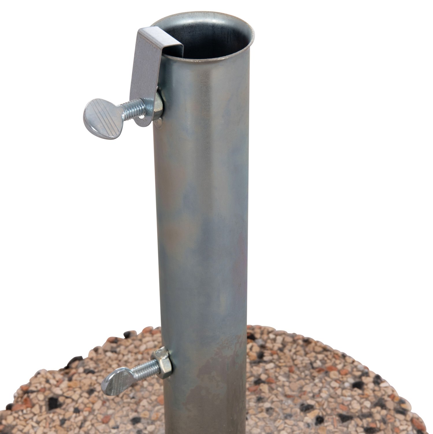 Ο σωλήνας υποδοχής της ομπρέλας έχει σφιγκτήρες και είναι γαλβανιζέ. Γαλβανιζέ είναι το ατσάλι με επίστρωση ψευδαργύρου για αντοχή στην οξείδωση. Η διάρκεια ζωής της γαλβανιζέ επίστρωσης είναι 30 χρόνια για γαλβανιζέ άριστης ποιότητας.