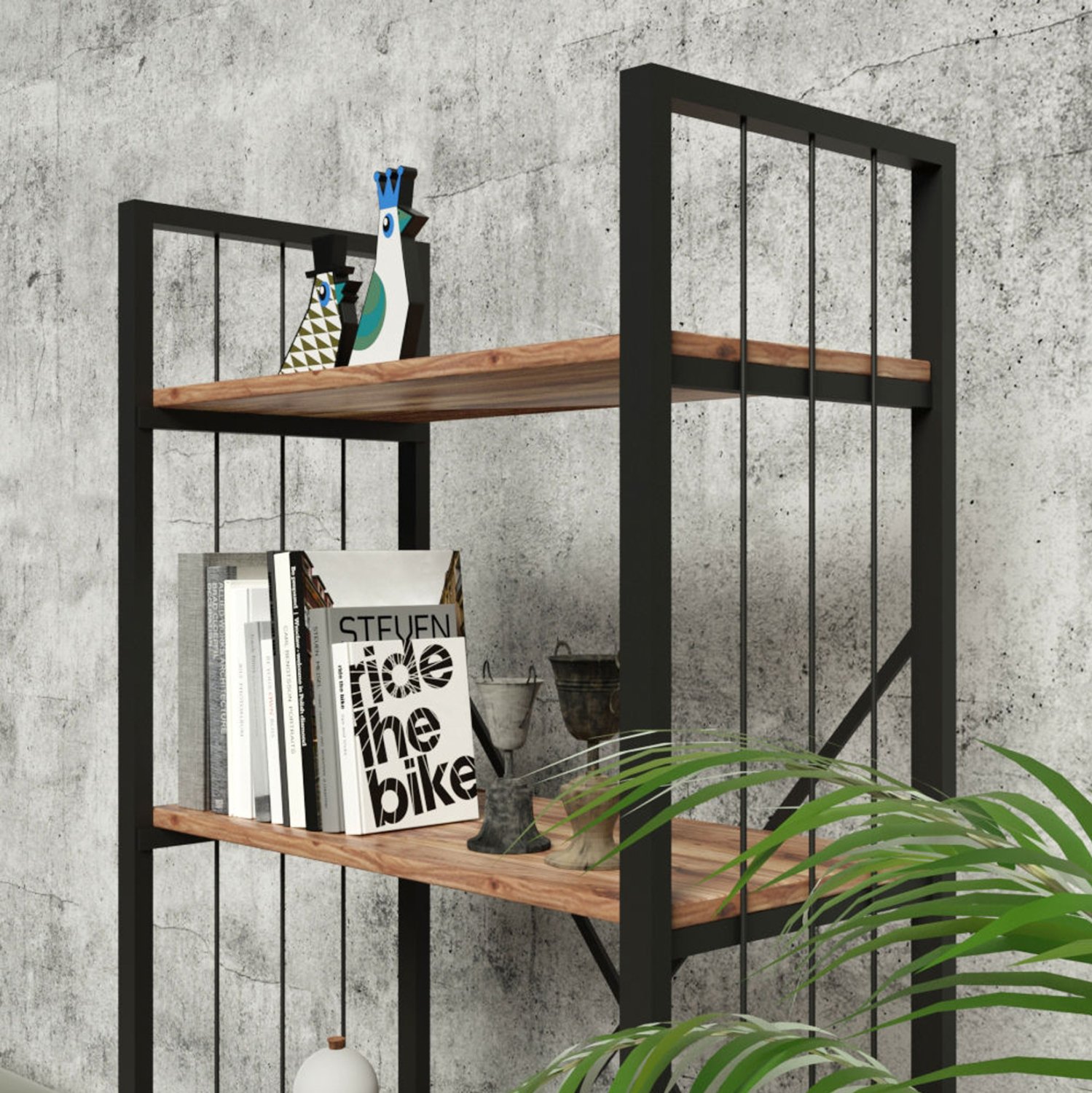 Η βιβλιοθήκη INDUS είναι μια μοντέρνα πρόταση για το γραφείο σας ή οπουδήποτε αλλού θέλετε να τοποθετήσετε μια βιβλιοθήκη. Διαθέτει 4 ανοιχτά ράφια τοποθέτησης από μελαμίνη, τα οποία στηρίζονται σε έναν μεταλλικό σκελετό. Οι διαστάσεις της την καθιστούν βολική για πολλούς χώρους, ενώ το χρώμα της είναι καρυδί με γκρι μεταλλικό σκελετό. Ο μοναδικός και μοντέρνος σχεδιασμός της μαγνητίζει τα βλέμματα και αναδεικνύει κάθε αντικείμενο που τοποθετείται πάνω της, ενώ ταυτόχρονα σας επιτρέπει να διατηρείτε τον χώρο σας σε τάξη.