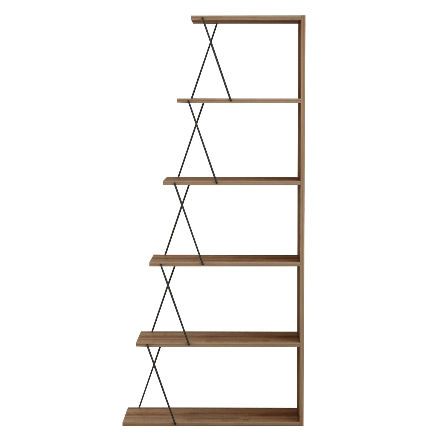 Διαθέτει 4 ράφια τοποθέτησης σε σχήμα σκάλας, τα οποία στηρίζονται μεταξύ τους με μεταλλικές ράβδους σύν ένα ράφι που είναι η κάτω επιφάνεια της βιβλιοθήκης, ενώ οι διαστάσεις της την καθιστούν βολική για πολλούς χώρους.