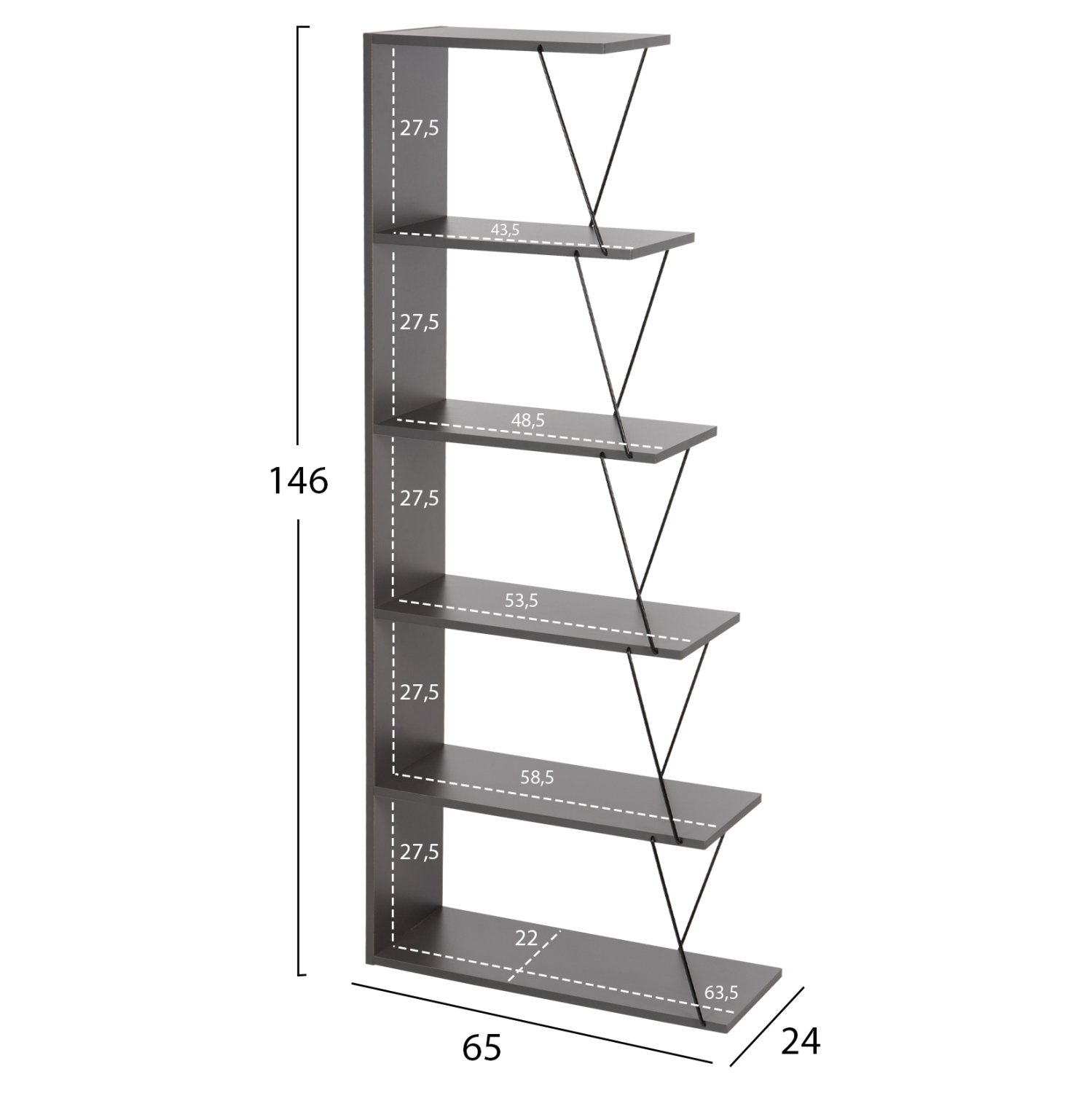 ΒΙΒΛΙΟΘΗΚΗ ΜΙΝΙ TARS HM2241.20 ΓΚΡΙ ΜΕΛΑΜΙΝΗ-ΜΑΥΡΕΣ ΜΕΤΑΛ. ΒΕΡΓΕΣ 65×22-24×146Υεκ.