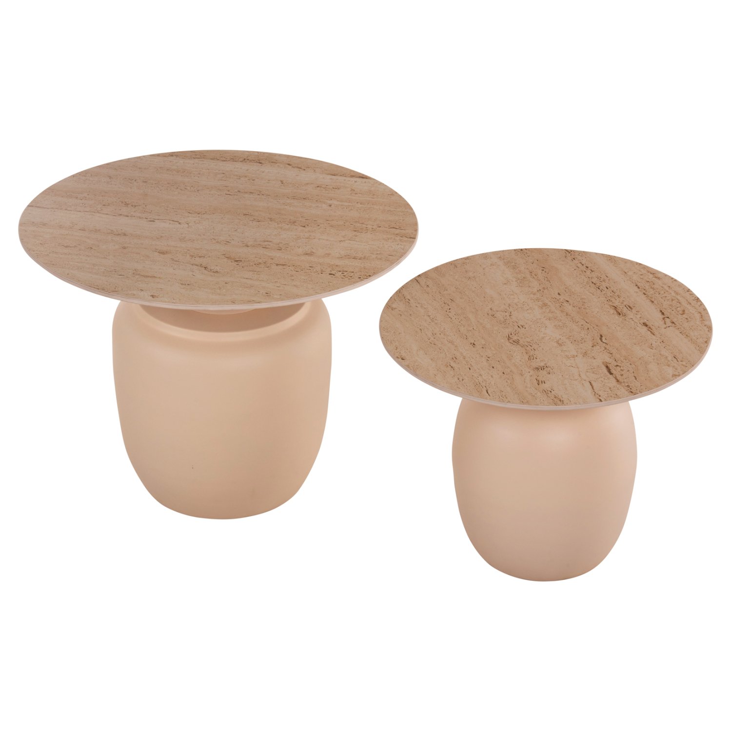 Το σετ 2 τραπεζιών FEREN για το σαλόνι είναι μια από τις νέες προσθήκες στην γκάμα μας. Πρόκειται για 2 τραπεζάκια στρογγυλά με κυλινδρική βάση και μεταλλικά. Το χρώμα τους είναι ΚΡΕΜ. Οι επιφάνειες είναι κεραμικές, σε παρόμοια απόχρωση με τις βάσεις. Η κρεμ απόχρωση προσδίδει μια αίσθηση αγνότητας και κομψότητας στον χώρο. Ιδανικά τόσο για το σπίτι, όσο και για επαγγελματικούς χώρους.