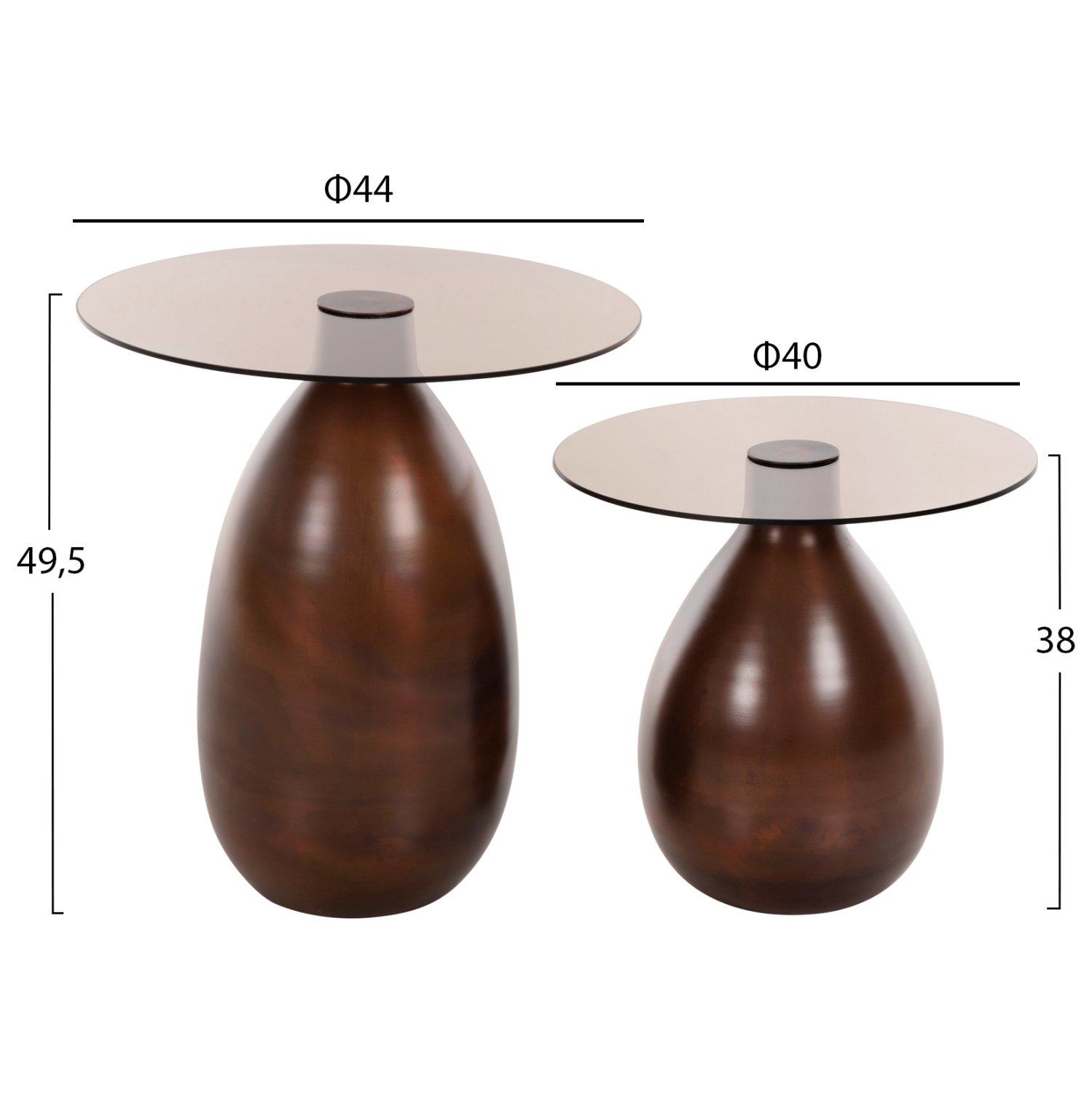 Το σετ 2 τραπεζιών REGEN για το σαλόνι είναι μια από τις νέες προσθήκες στην γκάμα μας. Πρόκειται για 2 τραπεζάκια στρογγυλά με κυλινδρική βάση και μεταλλικά. Το χρώμα τους είναι ΧΑΛΚΙΝΟ. Οι επιφάνειες είναι γυάλινες και σε ελαφριά καφέ απόχρωση. Ιδανικά τόσο για το σπίτι, όσο και για επαγγελματικούς χώρους.