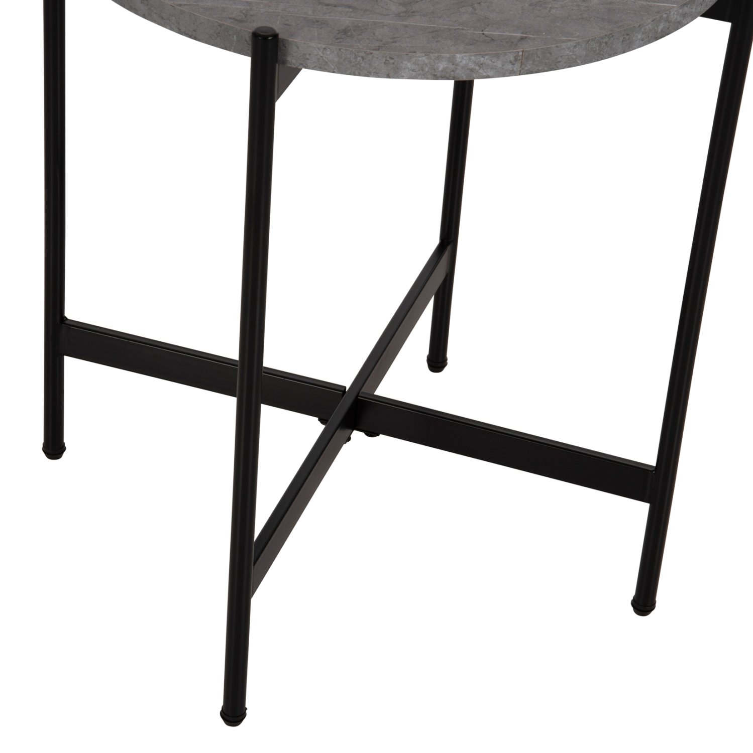 Το βοηθητικό τραπεζάκι ΗΜ9589.02 θα σας ενθουσιάσει με το στυλ και την πρακτικότητά του. Πρόκειται για ένα στρογγυλό ψηλό σχετικά τραπεζάκι με ιδιαίτερο χαρακτηριστικό ότι η επιφάνεια στηρίζεται σε μια βάση με χιαστί διάταξη. Η βάση είναι μεταλλική σε ΜΑΥΡΟ χρώμα, ενώ η επιφάνεια είναι κατασκευασμένη από MDF σε χρώμα ΓΚΡΙ ΜΑΡΜΑΡΟΥ.