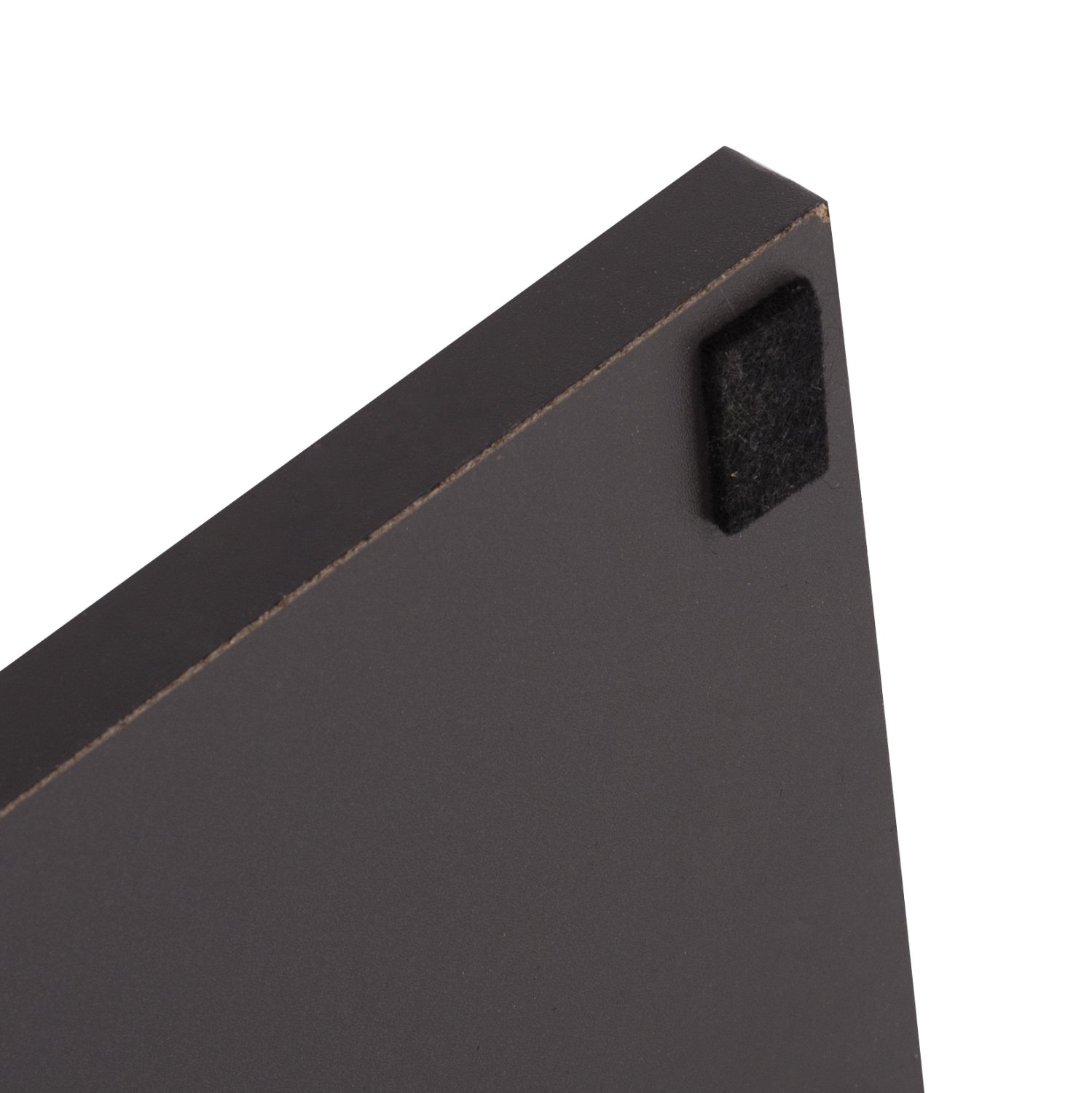 Το τραπεζάκι είναι κατασκευασμένο από υψηλής ποιότητας μελαμίνη πάχους 15 χιλιοστών. Η μελαμίνη είναι είδος ξύλου σε μορφή μοριοσανίδας(panel). Ως υλικό είναι πολύ ανθεκτικό και με μεγάλη σκληρότητα. Άρα, πρόκειται για ένα συνθετικό υλικό με πολύ σκληρή επιφάνεια, με αποτέλεσμα να είναι πολύ ανθεκτική στις γρατζουνιές, στην τριβή και τους λεκέδες.
