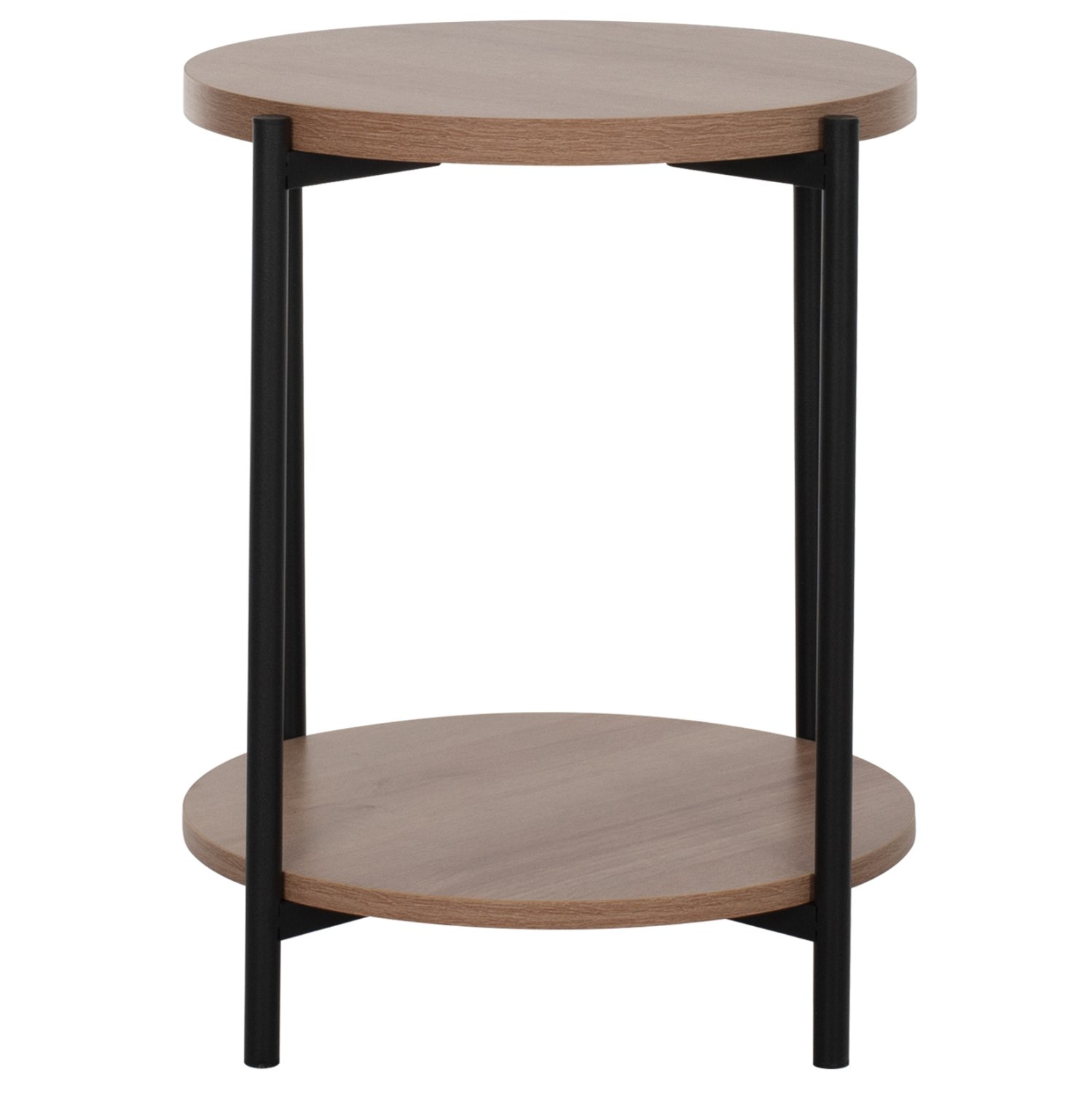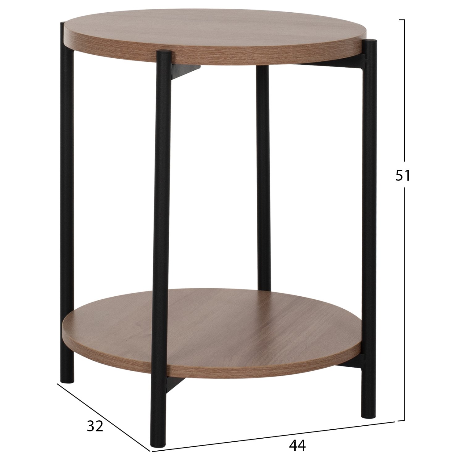Το NED είναι ένα όμορφο μεσαίου ύψους στρογγυλό βοηθητικό τραπεζάκι μελαμίνης για το σαλόνι, σε ΟΑΚ χρώμα ξύλου. Το χαρακτηριστικό του είναι ότι διαθέτει 2 επιφάνειες οι οποίες στηρίζονται σε ΜΑΥΡΕΣ μεταλλικές χιαστί βάσεις που είναι ενωμένες με τα πόδια. Αυτό το τραπεζάκι θα αναβαθμίσει αισθητικά το σαλόνι σας ενώ μπορεί να ταιριάξει με πολλά διαφορετικά στυλ και χρώματα στον τριγύρω χώρο.