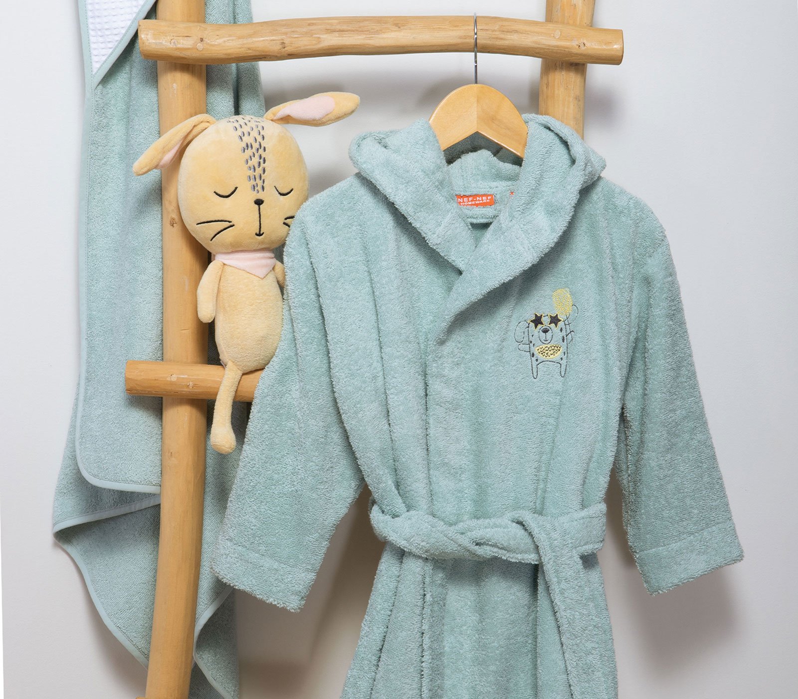 Βρεφικό μπουρνούζι με κουκούλα από 100% βαμβάκι. Ιδιαίτερα απαλό και απορροφητικό.
