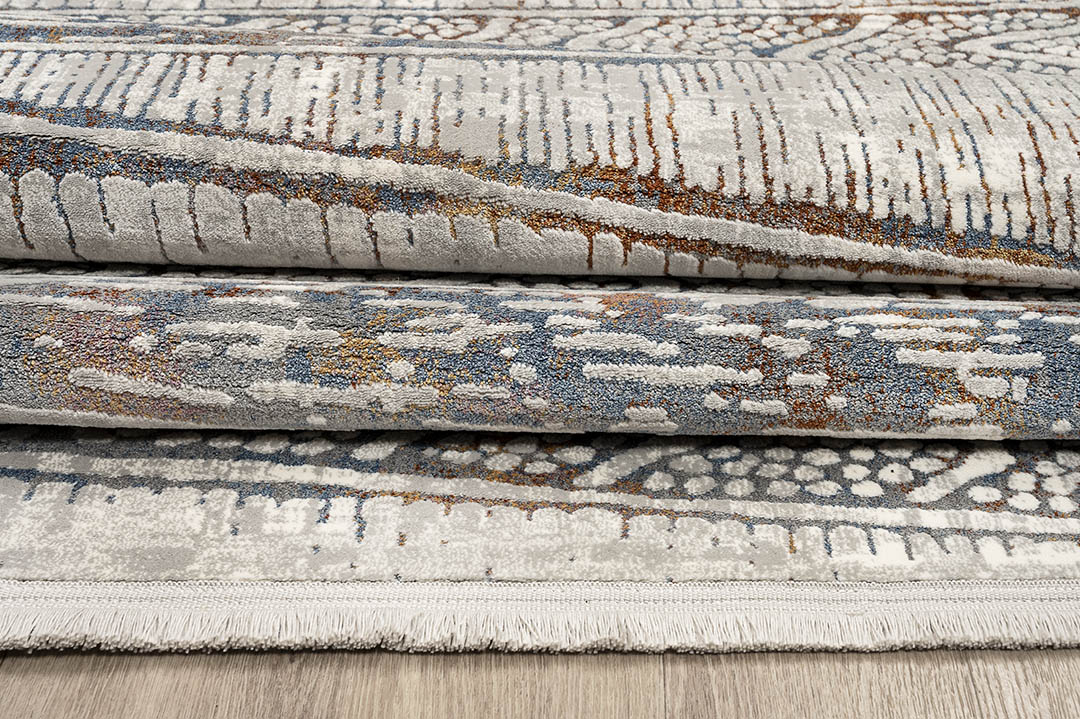 Η νέα σειρά Valencia έχει ως βάση το διαχρονικό γκρι-ασημί και το συνδυάζει με υπέροχες ανάγλυφες πινελιές σε αποχρώσεις του χαλκού, του γαλάζιου, του κίτρινου και του ροζ, προσδίδοντας έναν ιδιαίτερα μοντέρνο χαρακτήρα στον χώρο σας. Στις διαστάσεις χαλιού διατίθεται με γκρι κρόσσια.